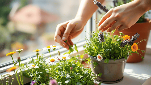 | Harvesting fresh herbs |